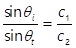 where c1 and c2 are the propagation velocities in medium 1 and 2, respectively. If c1 > c2 , a critical angle