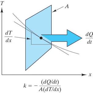 k is the proportionality constant between the heat flux and the temperature gradient. |