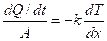 The heat flux is the rate of heat transfer across an area, A, due to a temperature gradient |
