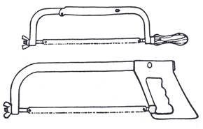 The hack saw is used for cutting materials by hand. It consists of a renewable hardened steel saw blade fitted into an adjustable frame, which is usually provided with a screw adjustment for controlling the tension of the blade. It is necessary to have both junior and senior hacksaws in your tool kit.